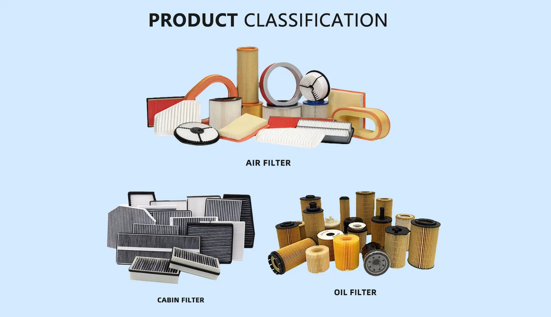 Productos principales:Filtro de aire, filtro de aire acondicionado, filtro de aire de cabina, filtro de aceite, filtro de combustible
